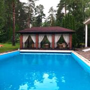 -У дома располагается бассейн с подогревом и подсветкой воды. Уютная терраса с островом,раковиной, электричеством, что позволяет отдыхать в узком кругу друзей и семьи.
