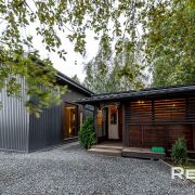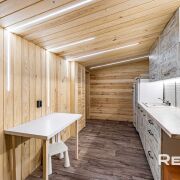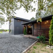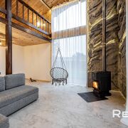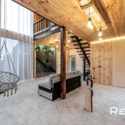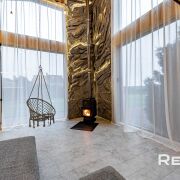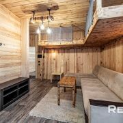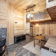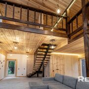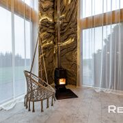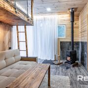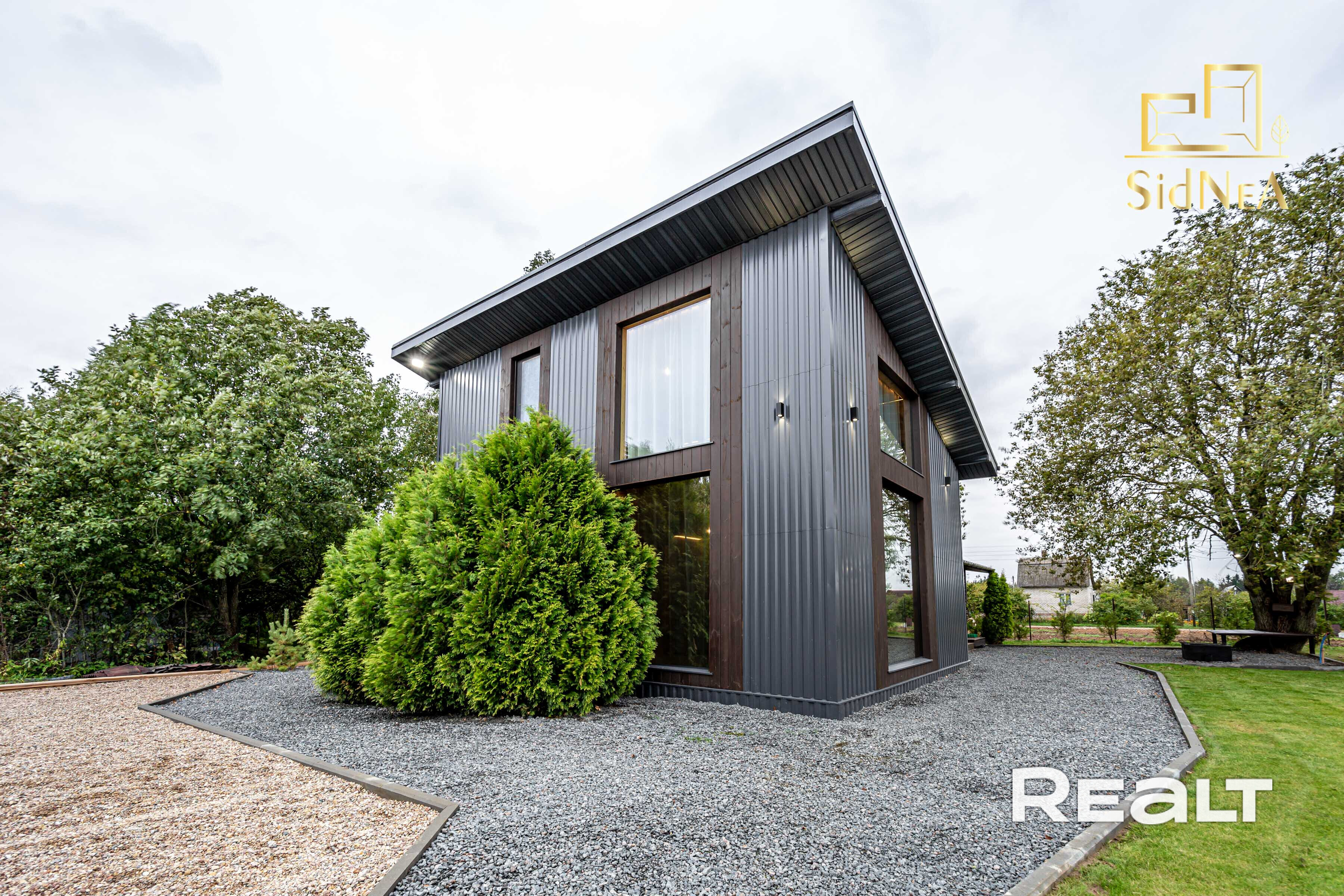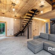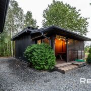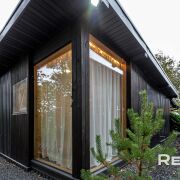 Основной дом 6х8 метра в 2 уровня. С большим панорамным остеклением и высотой потолка до 5,5 метра.