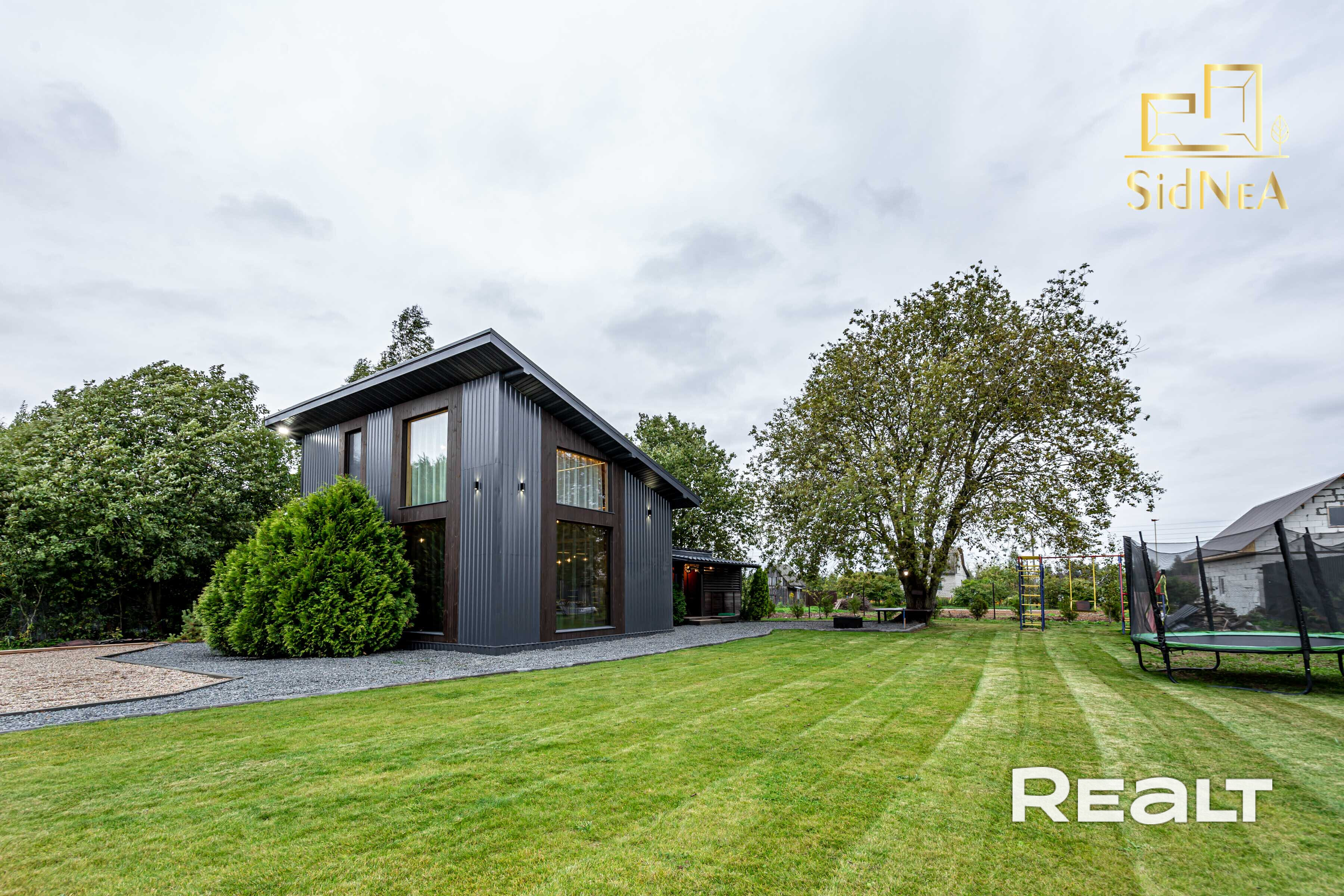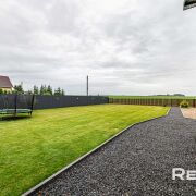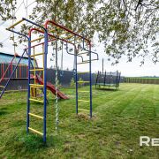Участок крайний, угловой, напротив застройки не будет, распланирован, ровный, правильной формы, высажен газон, огорожен, сделано освещение на участке, есть детская площадка, батут, хозблок.