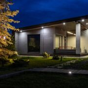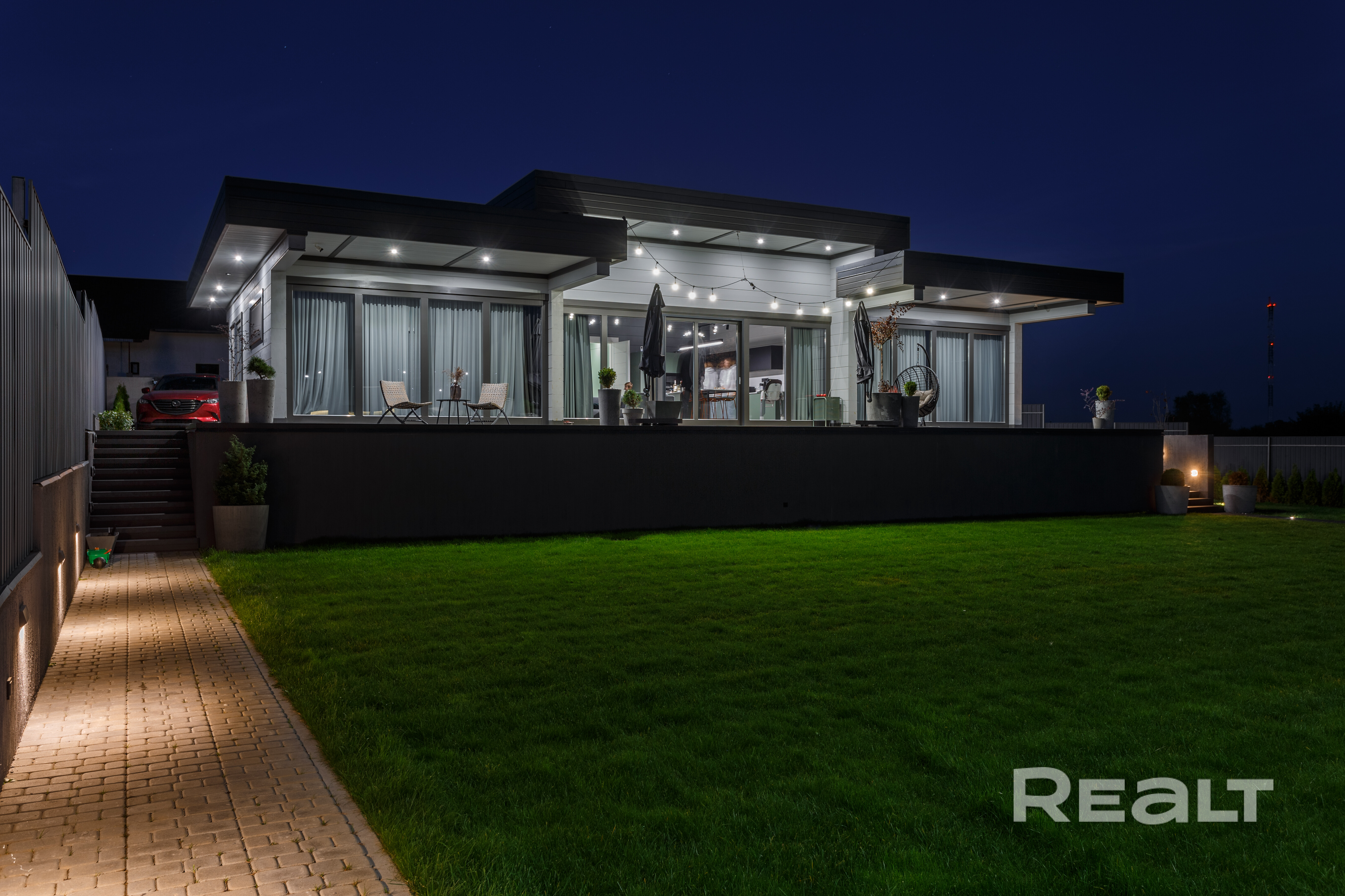 Ландшафтный дизайн: Програмируемый автополив, подсветка дорожек и деревьев, детская игровая площадка, баня, зона кострище, передвижное баскетбольное кольцо