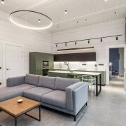Просторная совмещенная зона для комфортного проживания и приема гостей.
