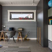 Две детские комнаты и мастер спальня с гардеробной зоной, кабинетом и санузлом с ванной.