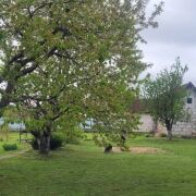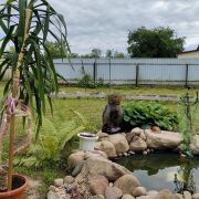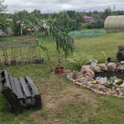 Большой ровный участок 22 сотки в частной собственности, обнесен забором. Ухожен, как и придомовая территория: имеются декоративный прудик, плодоносящие деревья и кустарники- прекрасные груши, яблони, черешня, грецкий орех, многолетние цветы.