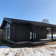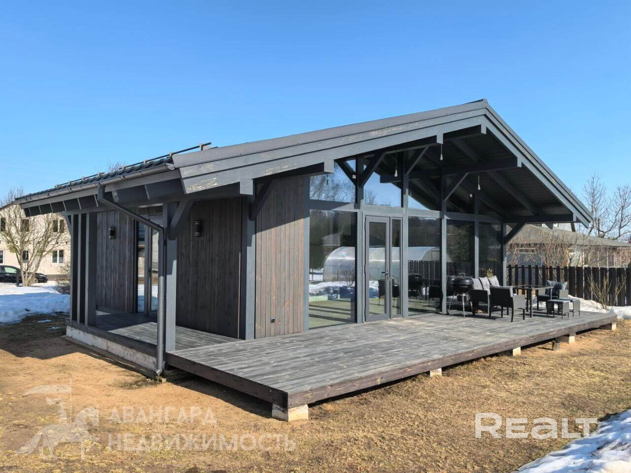 Дом возведен по индивидуальному архитектурному дизайн-проекту, с использованием передовой технологии из Германии (энергоэффективный дом из клееного бессучкового бруса 220/240 + теплопанели PIR, которые обладают наименьшим показателем теплопроводности среди всех современных утеплителей в мире. Оконное стекло Guardian в холодные зимние месяцы помогает удерживать тепло внутри помещения, а в летний же период оно, с одной стороны, помогает не допускать потерь охлажденного кондиционерами воздуха, а с другой – отражать нежеланный жар палящих солнечных лучей. Снаружи стекло с магнетронным напылением). Фасад: фиброцементные панели + планкен. Терраса (41,40 м2) выполнена из обожжённой сосны (все деревянные элементы внутренние и внешние обработаны и окрашены материалами Remmers)