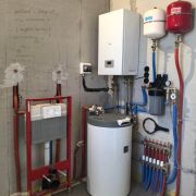 Отопление: электрическое (дешевле и безопаснее, чем газ: котёл Protherm 9кВт, тёплые полы. Всё рассчитано исходя из коэффициентов теплопотерь дома. Всё управление через модуль управления, с возможностью удалённого управления, через Wi-Fi. Даже без включённого отопления при наружной температуре более -25 градусов в доме температура со знаком «+»)