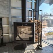 Панорамный камин Hajduk (Польша) 9кВт: широкоугольное арочное стекло создает впечатление близости к живому огню, регулятор позволяет управлять мощностью устройства в пять ступеней (без включённого отопления в состоянии полноценно отопить данный дом).