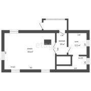 Дом размерами 7,5х11,5 состоит из двух частей – большой комнаты 33,6 кв.м. с печкой и кухонной зоны с большой печью, также есть прихожая в небольшой пристройке. Перекрытия, полы, окна и двери из дерева, крыша - шифер.