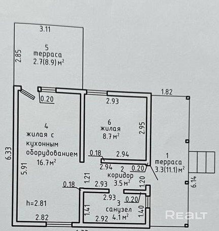 8.7 м²