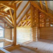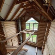 Натуральное бревно большого диаметра формирует атмосферу дорогого загородного шале — формат, который стабильно востребован у арендаторов, ищущих отдых «на природе с комфортом».
