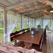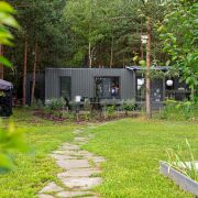 - 4 современных уютных домика для круглогодичного проживания (2 полностью оборудованных гостевых, 1 хозяйский и 1 зал для ивентов).