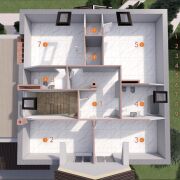 Пространство дома организовано так, чтобы каждый метр работал на удобство: светлая гостиная с панорамными окнами, кухня-столовая для семейных и дружеских встреч, мастер-спальни с собственными санузлами, отдельные комнаты под кабинет, детские или гостевые зоны. В доме предусмотрено всё для комфортного проживания большой семьи.