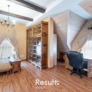 Мансарда: мастер-спальня, кабинет и санузел. Высота потолков — до 2,93 м, мебель выполнена по индивидуальному заказу из натурального дерева.