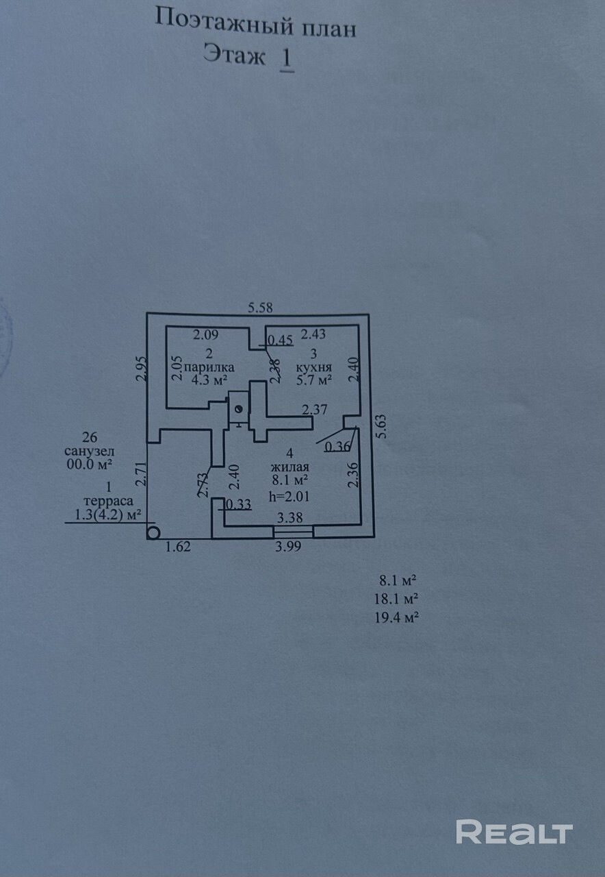 – площадь общая: 19,4 кв.м.