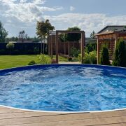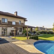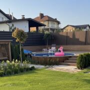 Установлен бассейн с подогревом, место для кострища, спортивная площадка с качелями, навес на два авто, открытая терраса для готовки;