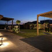 Участок ровный, ухоженный с ландшафтным дизайном и освещением;