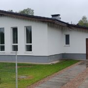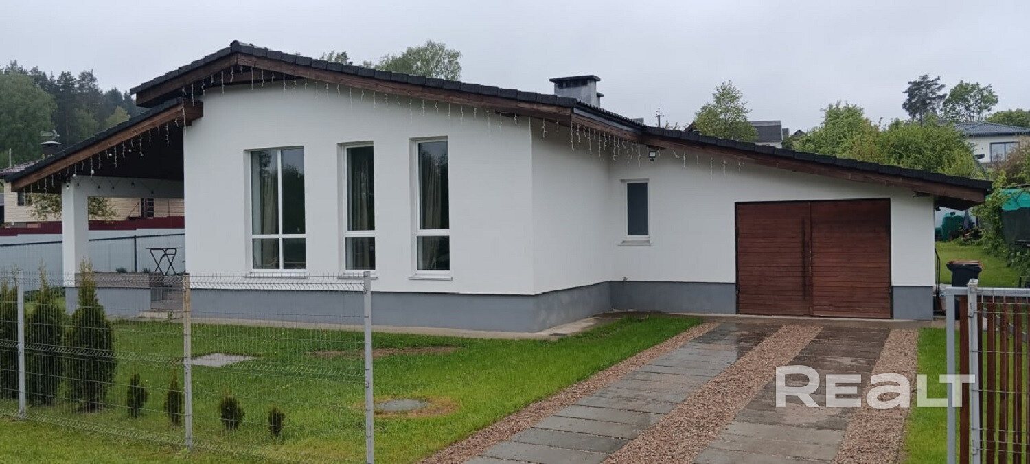 Участок огорожен, правильной формы, к дому идёт асфальтная дорога. Хорошее транспортное сообщение, в 10 мин. остановка для электрички «Направление Минск-Молодечно». В шаговой доступности лес и Минское море.