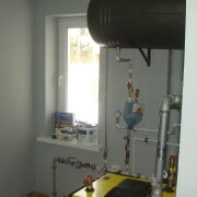 Отопление- два котла (твердотопливный, электрический) с лучевой системой подключения радиаторов.