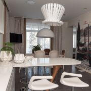 Дизайнерское решение, высококачественная отделка всех помещений с использованием только импортных материалов, итальянская дизайнерская мебель и освещение, бытовая техника Miele, плитка и сантехника премиум-класса ведущих итальянских и немецких производителей.