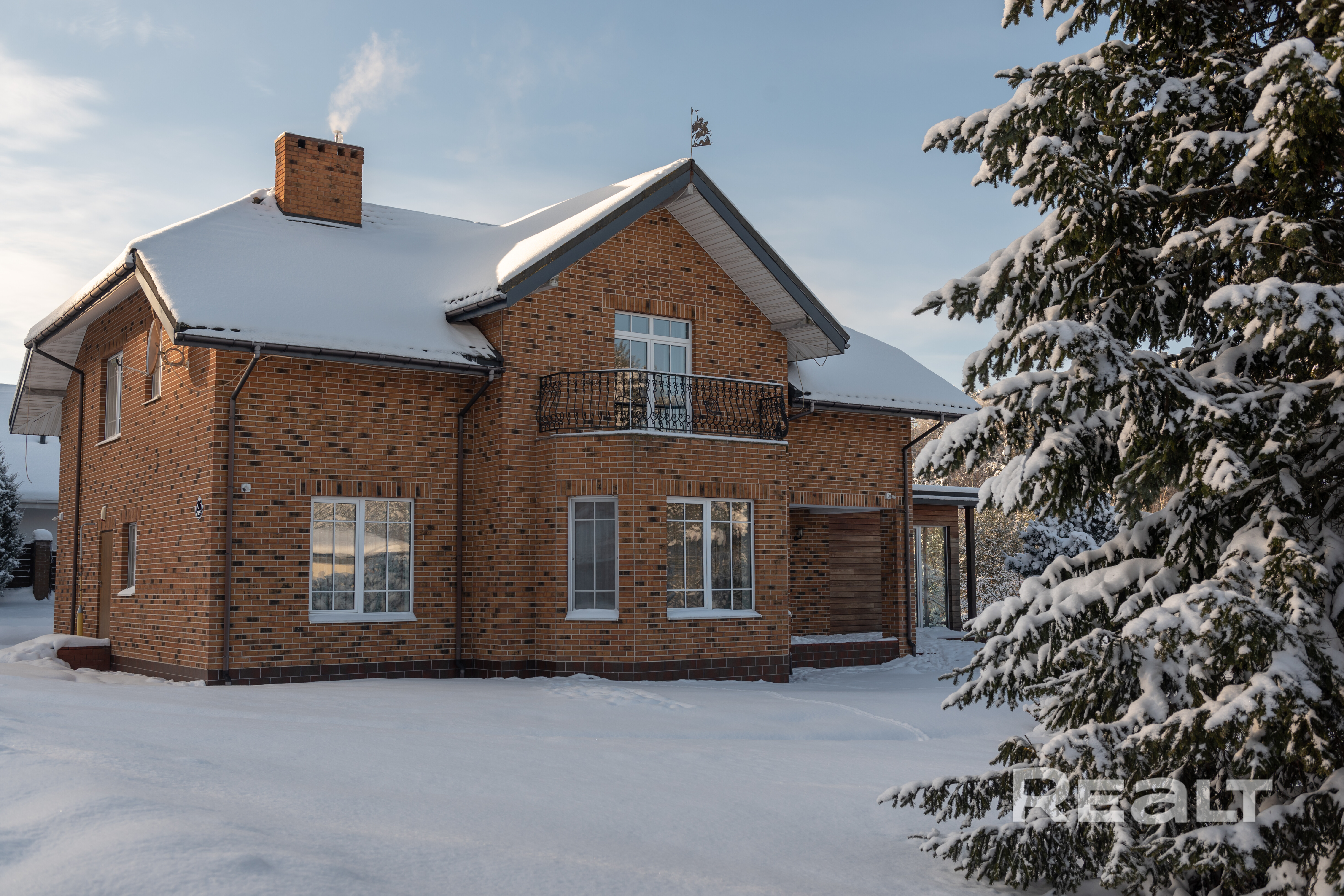 Построен по индивидуальному энергобезопасному дизайн-проекту из немецкого клинкера. Общая площадь дома — 270 м2, жилая — 148,6 м2, кухня-столовая — 27,1 м2. Высококачественная отделка импортными материалами: полы из экзотических пород бамбука и палисандра, лестница и двери сделаны на заказ из массива ясеня, немецкие окна в пол с пятикамерными стеклопакетами. Три спальни, 3 санузла, просторная кухня-столовая с выходом в зимний сад и на летнюю террасу, французский камин. Итальянская кухня от известного дизайнера с винным шкафом, бытовая техника Miele. Отопление: газовый котёл и автоматика (погодозависимая) Vaillant , система фильтрации и умягчения воды, 2 гелевые батареи на крыше для подогрева воды обеспечивают комфорт и экономию.