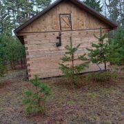 Просторный участок (25 соток) усеян молодыми елями, рядом с участком запруда бобров.