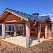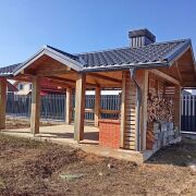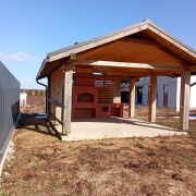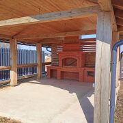 На участке оборудована беседка с печью и мангалом — готовое место для отдыха.