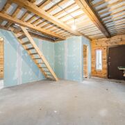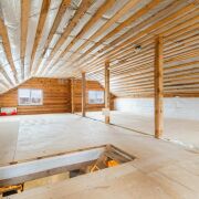 - На первом этаже выполнена бетонная стяжка, на втором — фанера, уложенная в уровень, готова к чистовой отделке. Мансарда утеплена современным материалом эковатой, который сохраняет тепло зимой и прохладу летом.