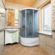 - Коммуникации включают газ, электричество, которое полностью разведено по дому, водоснабжение из собственной скважины, заведённое в дом и баню. Канализация местная, состоит из двух колодцев, что гарантирует удобство в эксплуатации.