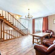 -Второй этаж — уютная гостиная с камином для семейных вечеров и три изолированные спальни, каждая со своим санузлом.
