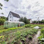 - На ухоженном участке площадью 11 соток есть всё необходимое для комфортной жизни. Металлический гараж для машины, хозяйственная постройка из блоков и уютная баня позволят наслаждаться бытом и отдыхом на своём участке.