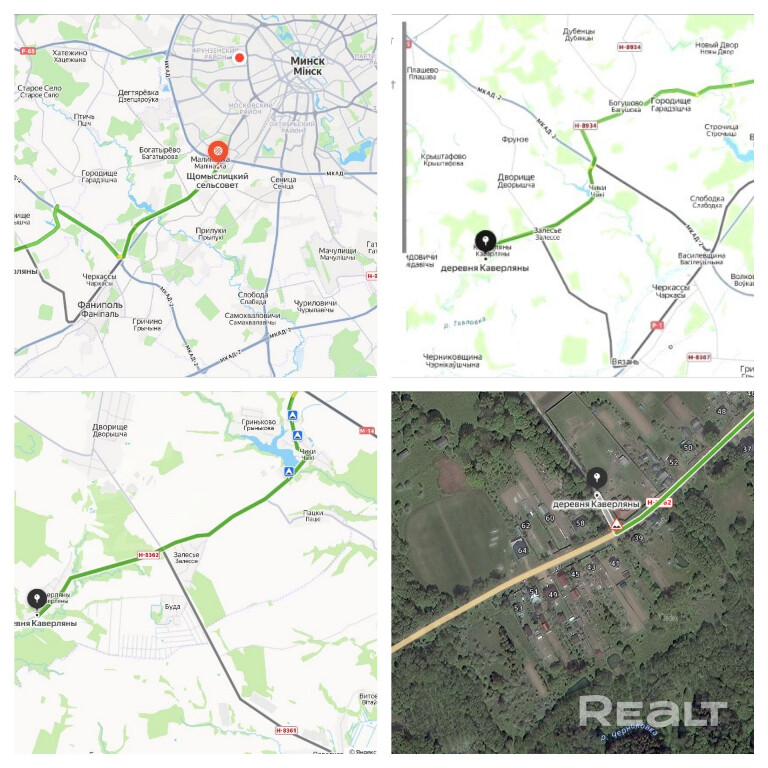 Недвижимость находится по адресу: Дзержинский р-н, деревня Каверляны. 19-26 км от Минска в зависимости от выбранного подъездного пути..