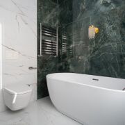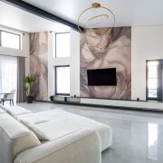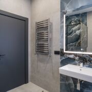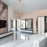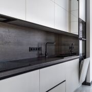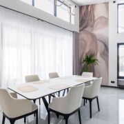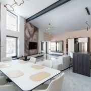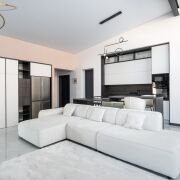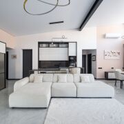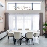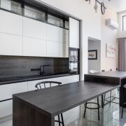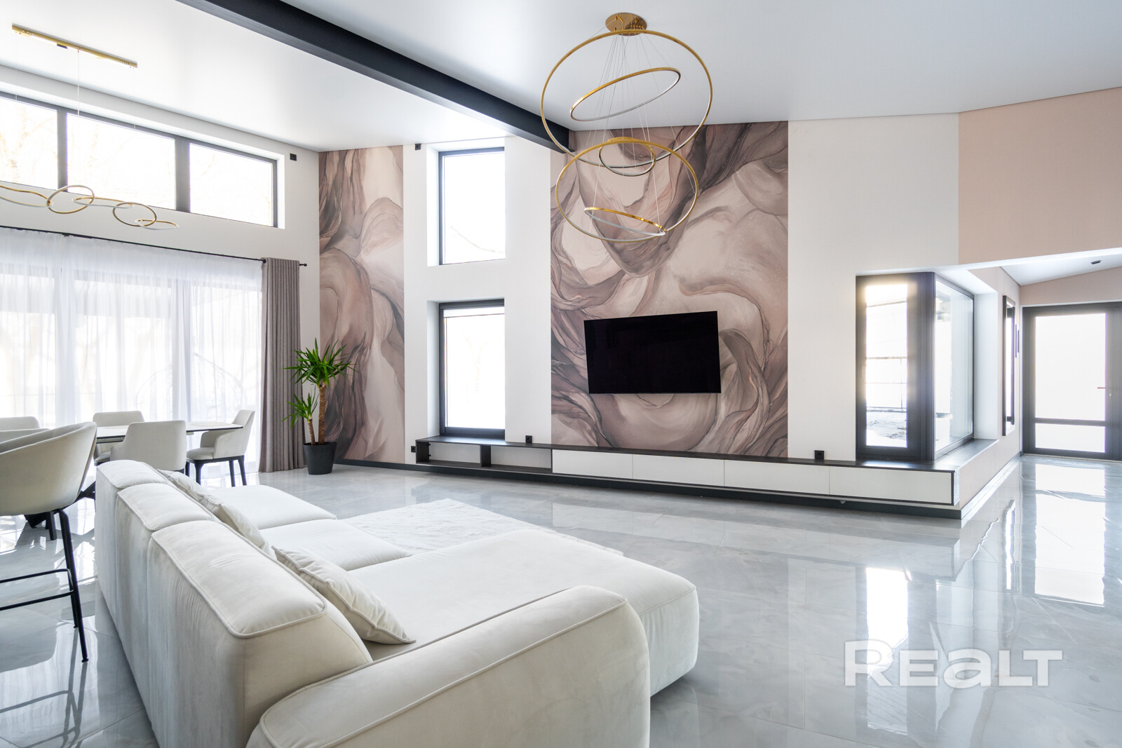 Дом площадью почти 200 м2 построен для себя с использованием высококлассных материалов: монолит и керамзитобетон, свайный фундамент. Современная архитектура, высокие потолки до 4,5 м в зоне гостиной, второй свет — много воздуха и пространства. Выглядит свежо, стильно и дорого.