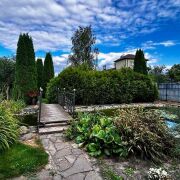 -Просторный участок, площадью 25 соток полностью огорожен. Здесь создано идеальное пространство для отдыха: живописный пруд с аккуратным мостиком придаёт территории особый шарм, а высокие туи создают уют и комфорт.