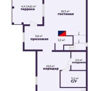 -Общая площадь составляет 147,5 кв.м., а жилая - 69,3 кв.м.