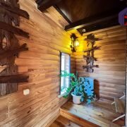 -В доме сделан отличный ремонт: натуральная деревянная отделка стен и потолка наполняет пространство теплом и уютом, а грамотное освещение подчеркивает стиль. Установлены современные окна ПВХ, на вхоже стоит прочная металлическая дверь.
