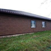 - Фасад дома обшит металлическим профилем под блокхаус толщиной металла 0,5 мм., что создает вид деревянного дома и избавит Вас от ежегодных ритуалов по обработке дома защитными пропитками.