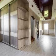 ПВХ стеклопакеты. Санузлы облицованы кафельной плиткой, установлены необходимая сантехника и мебель. Встроенная кухня с техникой: варочная панель, духовой шкаф, вытяжка, посудомоечная машина, холодильник. Спальни укомплектованы мебелью.