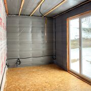- Конструктив: Выполнен качественный ленточный фундамент (10х11 м, высота ленты 180 см, бетон С20/25 W4). Установлены современные панорамные окна, обеспечивающие высокий уровень естественного освещения.