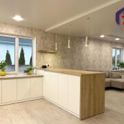 -Кухня укомплектована встроенной техникой: духовой шкаф, варочная панель, посудомойка, вытяжка, микроволновая печь.