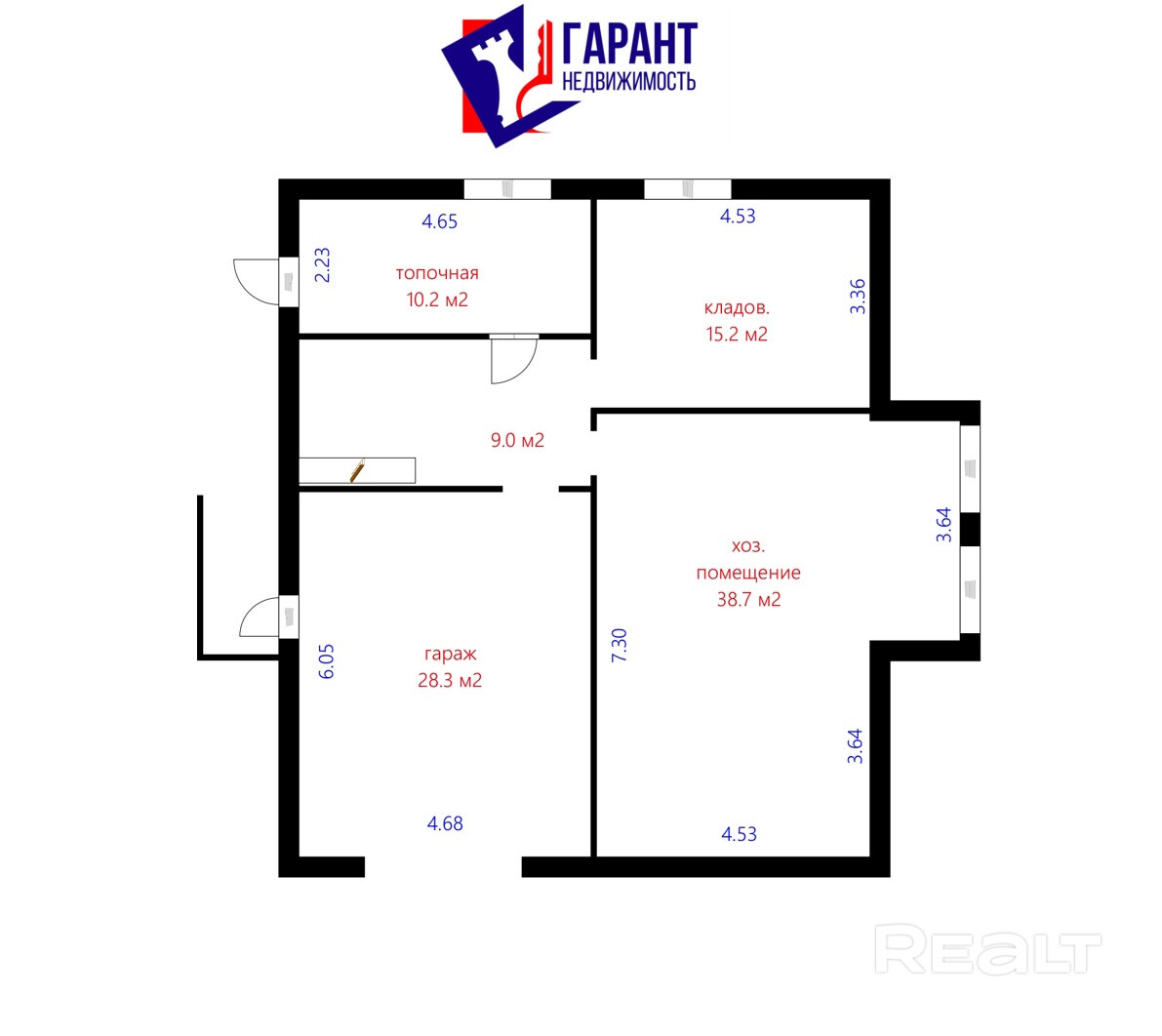 В цокольном этаже – 28-ми метровый гараж, 15-ти метровая кладовая и топочная