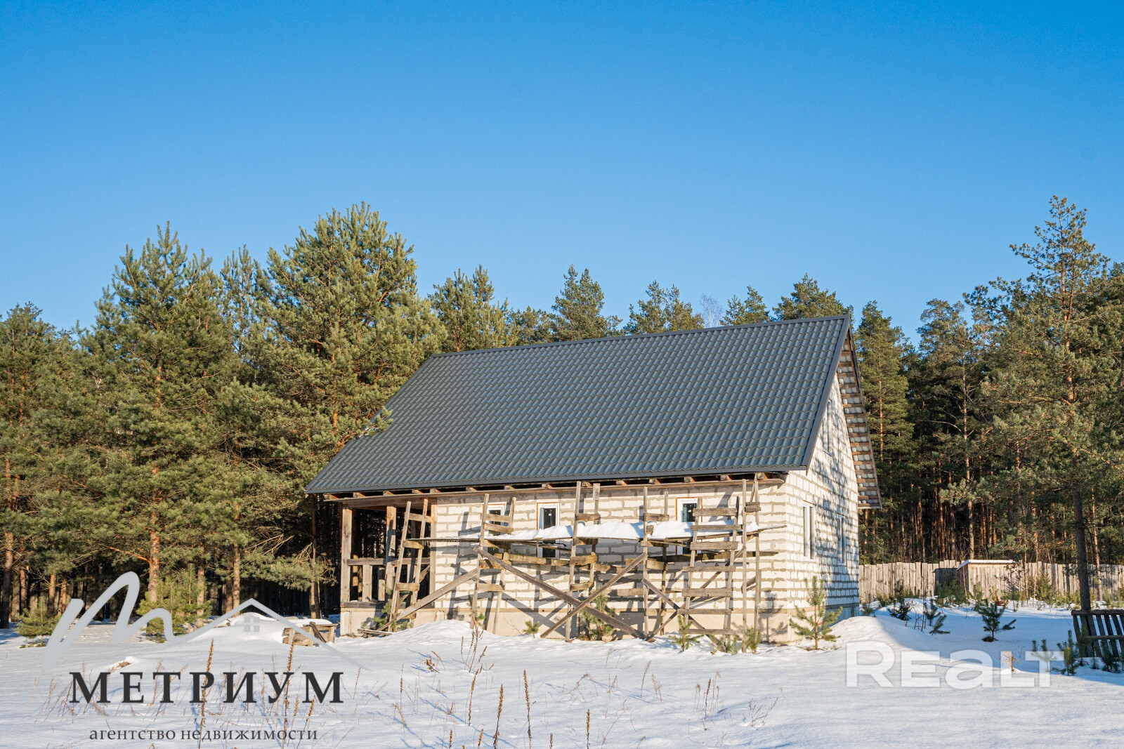 Стены из газосиликатных блоков, кровля покрыта металлочерепицей.