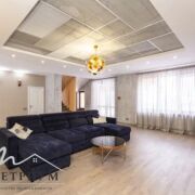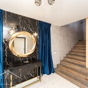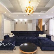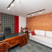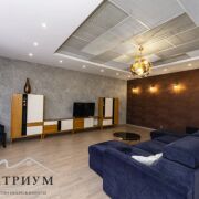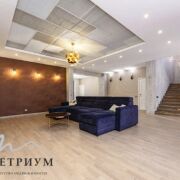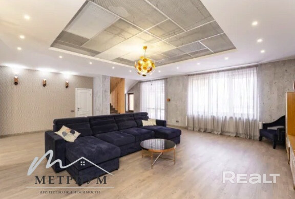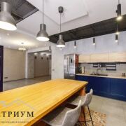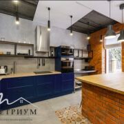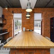 · 1-й этаж: Объединенное пространство кухни-гостиной 33.3 и 53.3 м2 соответственно, полностью укомплектовано всем необходимым. Интерьер в стиле лофт, с открытой кирпичной кладкой в сочетании с глубоким синим цветом фасадов кухни и обивки дивана на фоне молочных стен создает ощущения воздуха и свежести. Выход из гостинной на большую открытую террасу с видом на лес и собственный участок. Просторная гостиная с огромным диваном. Гостевой санузел, постирочная и техническое помещение.