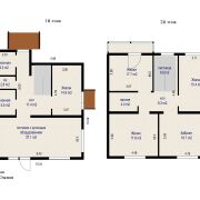 На втором этаже расположены 4 комнаты: 17.7 м.кв., 15.4 м.кв., 18.7 м.кв, 17.6 м.кв., совмещённый с/у.