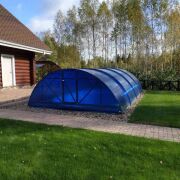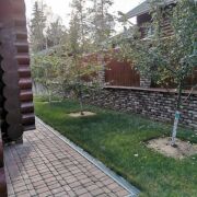 На участке установлен кованный навес на четыре машины, открытый бассейн с системой очистки воды и фильтрации. Идеально ухоженный газон. Плодоносят голубика, персики, яблоня, вишня и слива.