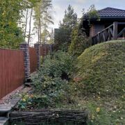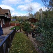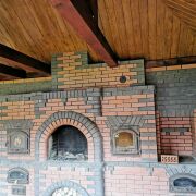 На участке установлена закрытая беседка из латвийского клинкерного кирпича с барбекю, коптильней, русской печкой и казаном. Дверцы с закаленным стеклом из славацкого чугуна.