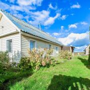 - Одноуровневый бревенчатый жилой дом 1940 года постройки. Фасад дома обшит сайдингом.