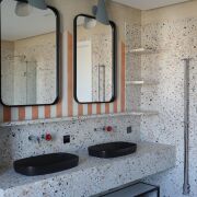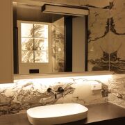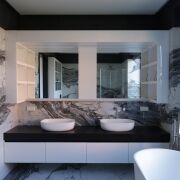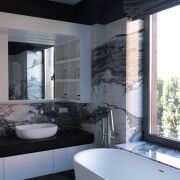 Интерьеры выполнены в современном стиле с реализацией Умного дома (Zennio) и управлением функциями: освещения, управление теплом, вентиляция, видеонаблюдение. Все полы кроме спален второго этажа – теплые. Сантехника – премиум класса: BONGIO, CATALANO, MARGAROLI, BALTECO. Плитка - FMG, IRIS, CASAGRANDE PADANA.