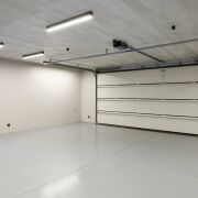 На первом этаже расположены: прихожая-холл, гостиная-столовая, кухня, гостевая комната, постирочная, отапливаемый гараж и котельная. Также на первом этаже расположена мастер-спальня со своим санузлом и гардеробной с отдельным выходом на общую с гостиной террасу.