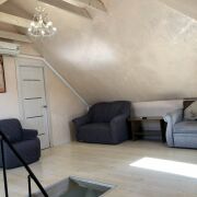 Экологичность и комфорт в каждой детали: Дополнительно установлены электрические батареи с возможностью управления по SMS – современные технологии для вашего удобства. Стены облицованы венецианской штукатуркой и жидкими обоями. Пол из натуральной сосны, деревянные стеклопакеты и мансардные окна создают неповторимую атмосферу, где воздух словно дышит по-особому – живо и чисто.