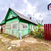 -Уютный бревенчатый дом с обновлённой шиферной крышей и аккуратным дымоходом, расположенный в центре посёлка.