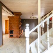 Дом имеет отличную планировку: на первом уровне расположена кухня, гостиная с камино-печью с лежанкой и встроенным теплообменником — обогревает весь дом одной закладкой дров ; санузел, теплые полы. Кухня оснащена всей необходимой техникой для комфортного проживания. На втором уровне также две жилые комнаты.